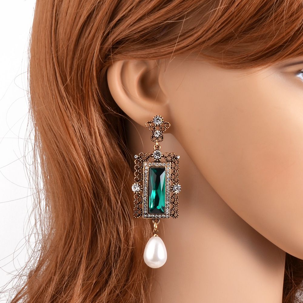 195208 Emerald Green Rhinestone Earrings In Pot Metal Costume Jewelry Aurora Bijoux Costume Jewelry , Cleopatra loved emeralds, as have members of high society for thousands of years.